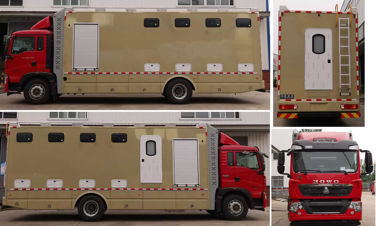 其它 | 隨底盤選裝駕駛室;選裝整車外觀及后部結構;僅采用底盤5600mm、5800mm軸距;側防護裝置為整體式防護結構;后下部防護裝置材料材質:Q235,連接方式:螺栓連接,斷面尺寸(寬×高):120×120(mm),離地高度:500mm;ABS系統(tǒng)控制器生產企業(yè)/型號為威伯科(上海)管理有限公司/4460046300;裝備有便池、抽水、盥洗等設施,用于流動廁所. | ||