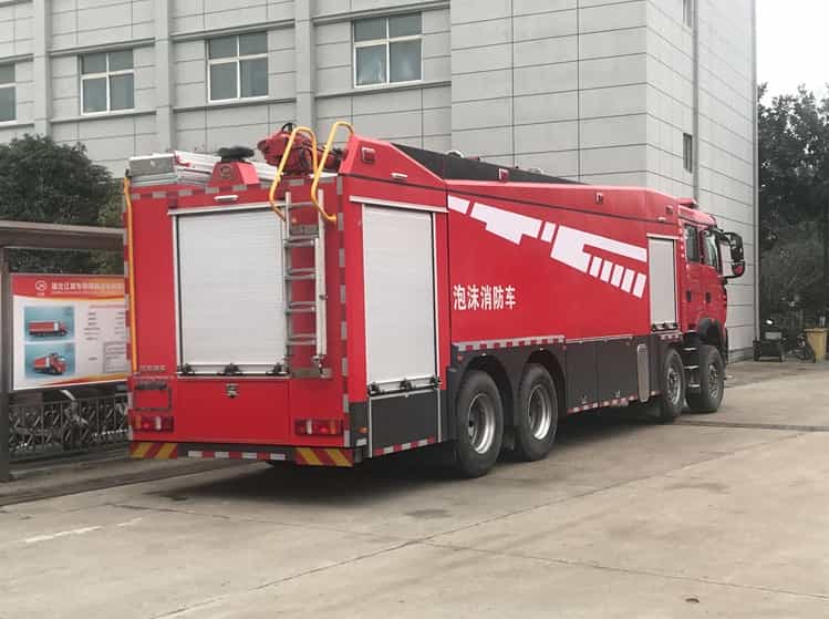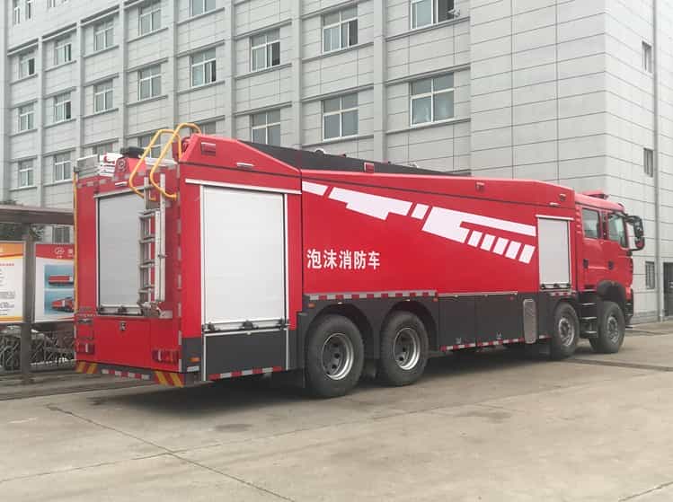 重汽豪沃JDF5430GXFSG250/Z6型25噸水罐消防車采用重汽豪沃ZZ5447TXFV466MF5底盤改裝而成。整車由消防員乘員室和車身兩大部分組成,乘員室為原裝雙排,可乘坐2+4人,該車為外露罐結(jié)構(gòu),中部為罐體,后部為泵房。載液罐體為PP材質(zhì),與底盤采用彈性連接,載水量25200kg,裝備了陜西航天動(dòng)力高科技股份有限公司生產(chǎn)CB10/100-TB型常壓消防泵,額定流量80L/S,車頂安裝成都威斯特消防機(jī)械有限公司生產(chǎn)的PS8/80W型車用消防炮。該車最大的特點(diǎn)是載液量大、操控性好、維修簡(jiǎn)便。可廣泛應(yīng)用于公安消防隊(duì)、廠礦企業(yè)及社區(qū)、碼頭等場(chǎng)所,撲救大型油類火災(zāi)和一般物質(zhì)火災(zāi)。